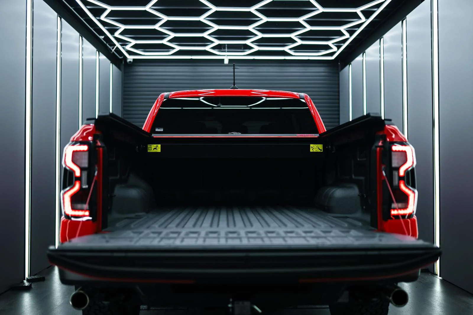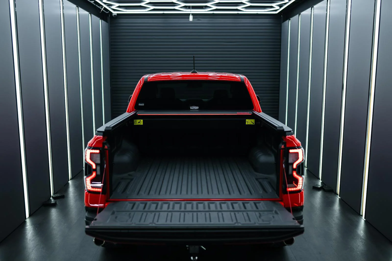 Aumente a segurança e a visibilidade com o sistema elétrico integrado e avançado do Tessera Roll+. A barra de luz LED vermelha funciona como luz de travão e luz de presença. A faixa de LED branca dinâmica de comprimento total, posicionada de maneira única na lâmina móvel, move-se em sincronia com a cobertura retrátil, proporcionando uma iluminação consistente e completa à noite, mesmo quando totalmente carregada.