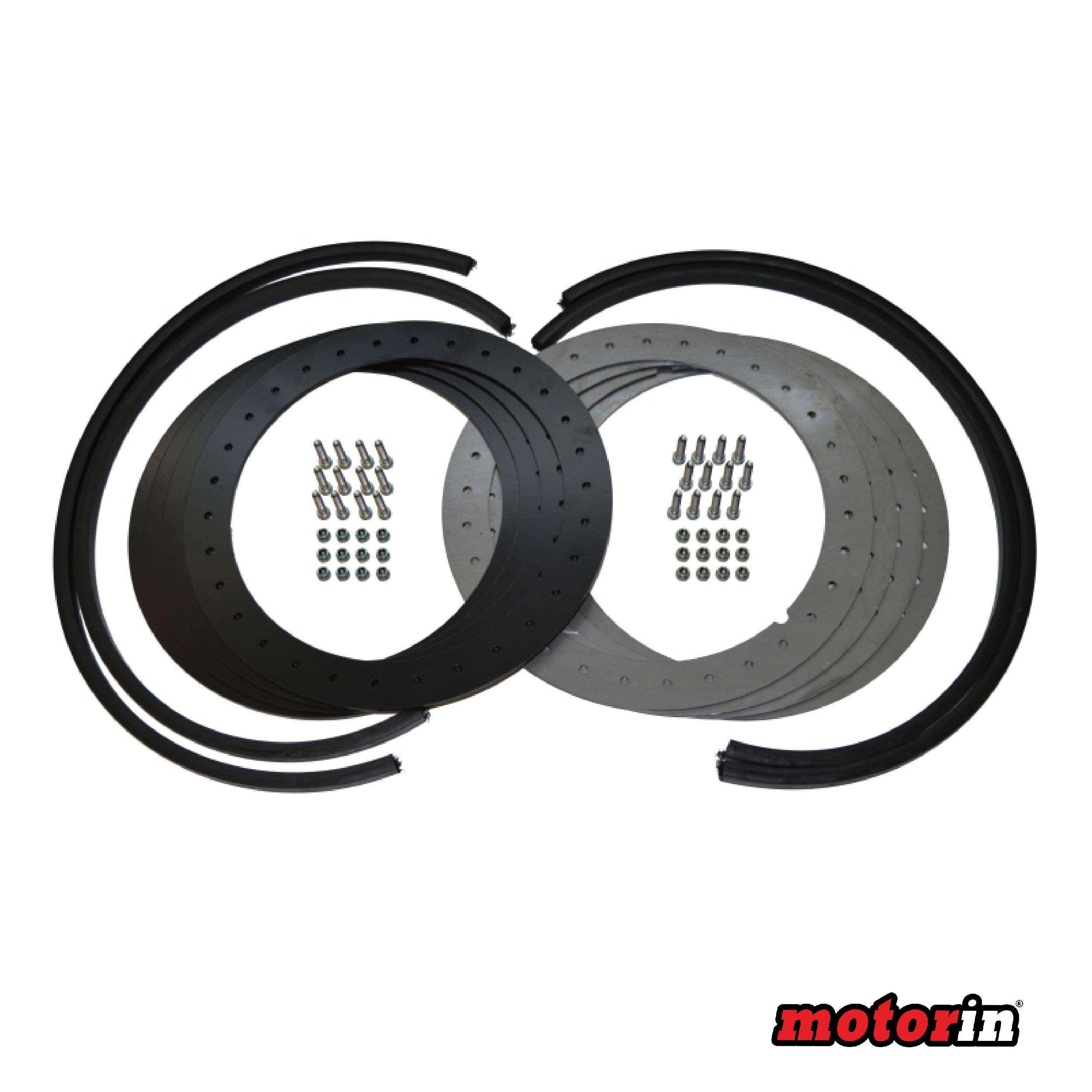 Kit completo com 4 aros, 4 juntas e parafusos.