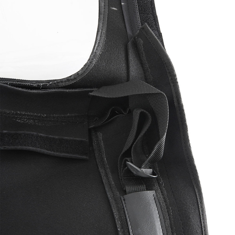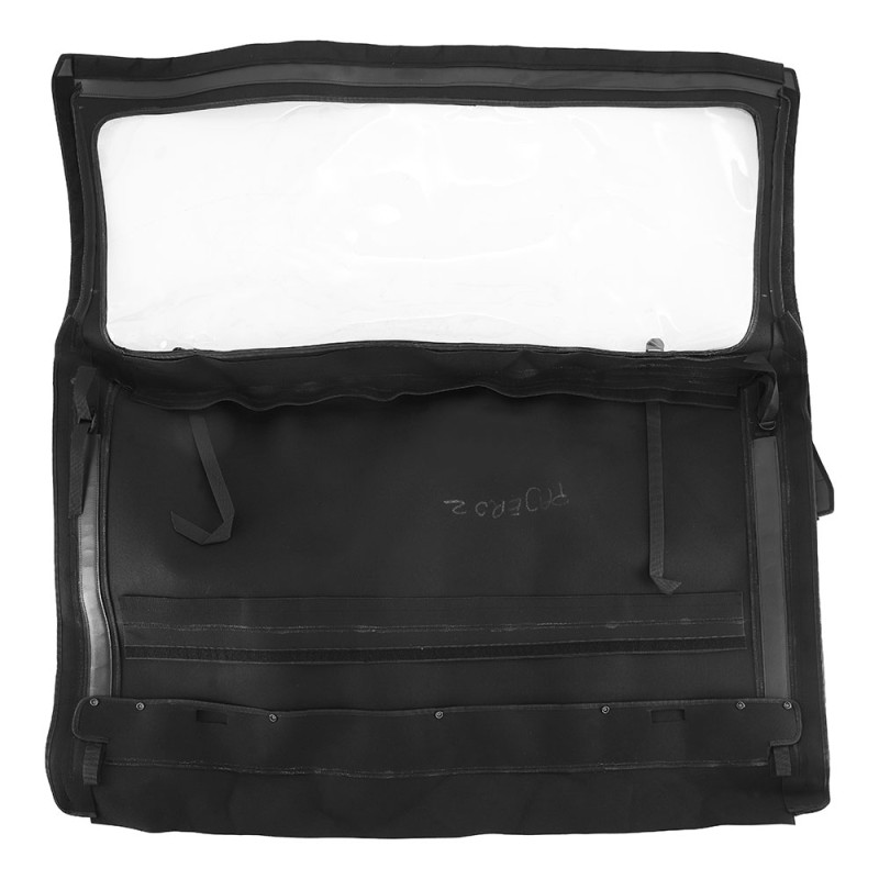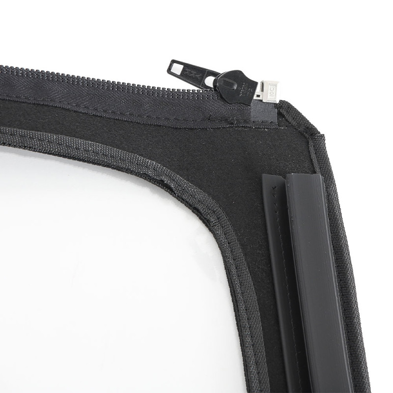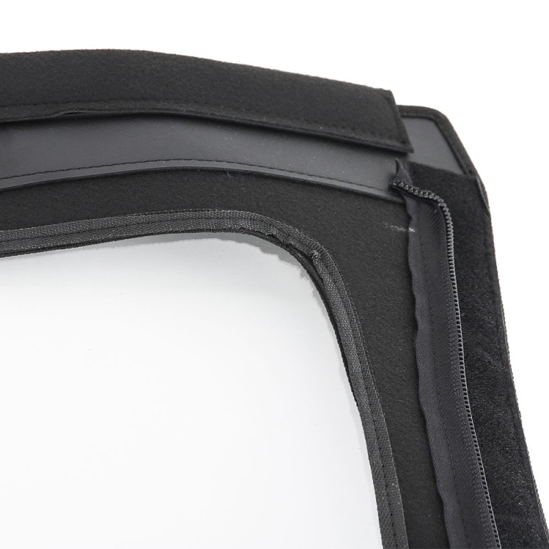 - Fixação com velcro para manter o vidro traseiro enrolado