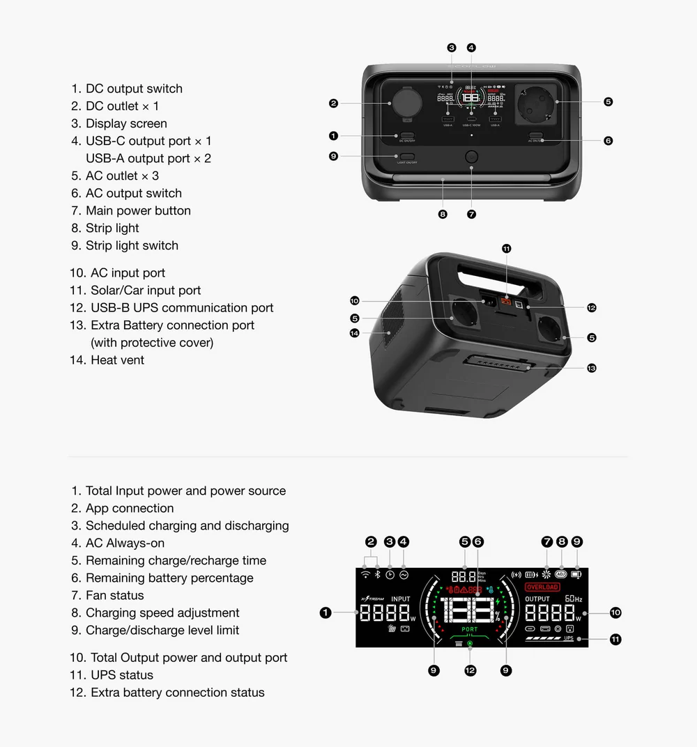 Com 858 Wh de capacidade, através da bateria adicional EB600, oferece energia suficiente para alimentar dispositivos de maior exigência. Graças à tecnologia GaN e à função X-Boost, consegue operar equipamentos até 1200 W, tornando-se perfeita para campismo, caravanismo, trabalho ao ar livre ou como fonte de backup.