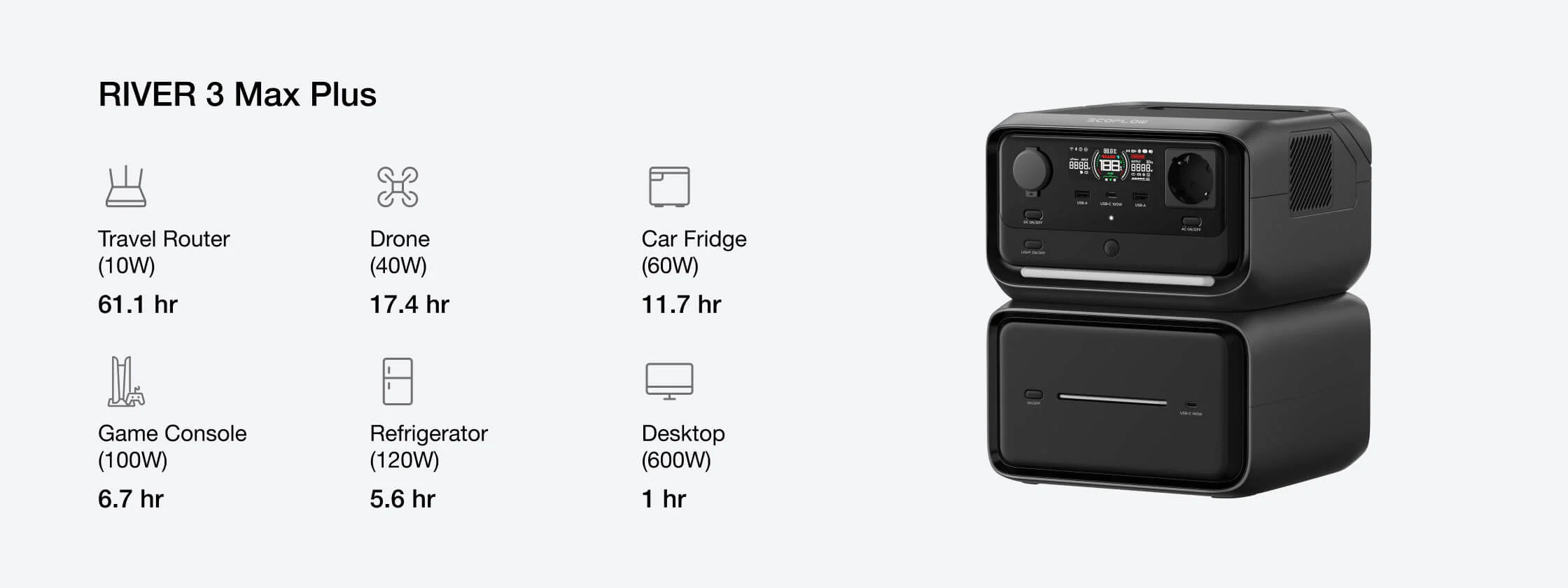 A EcoFlow River 3 Max Plus Powerstation é a solução de energia portátil ideal para quem procura potência, robustez e flexibilidade, seja em casa ou em movimento.