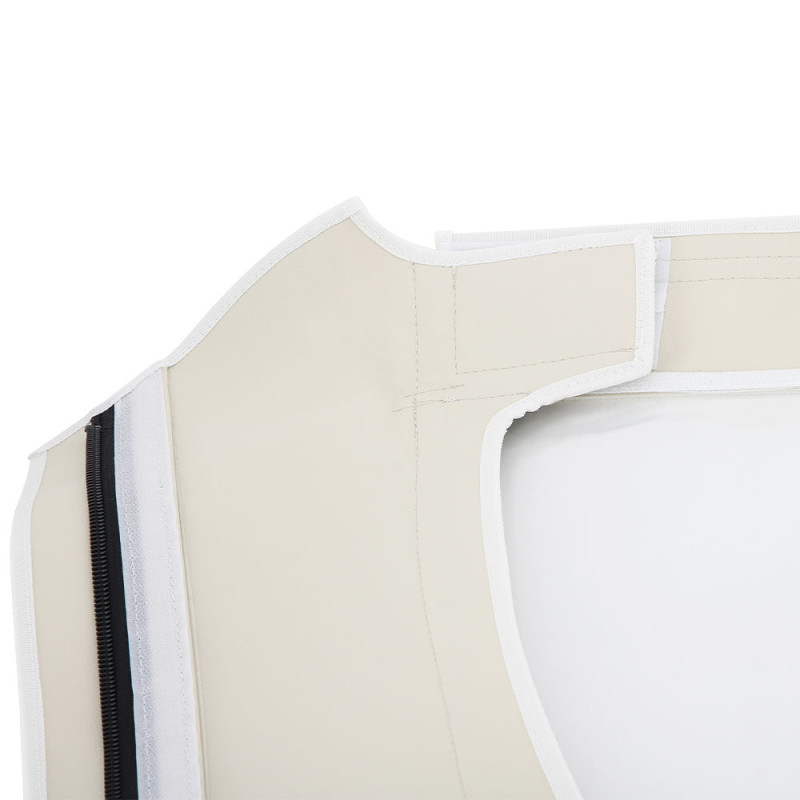 - Exterior em PVC (vinil) com acabamento mate tipo grão de couro