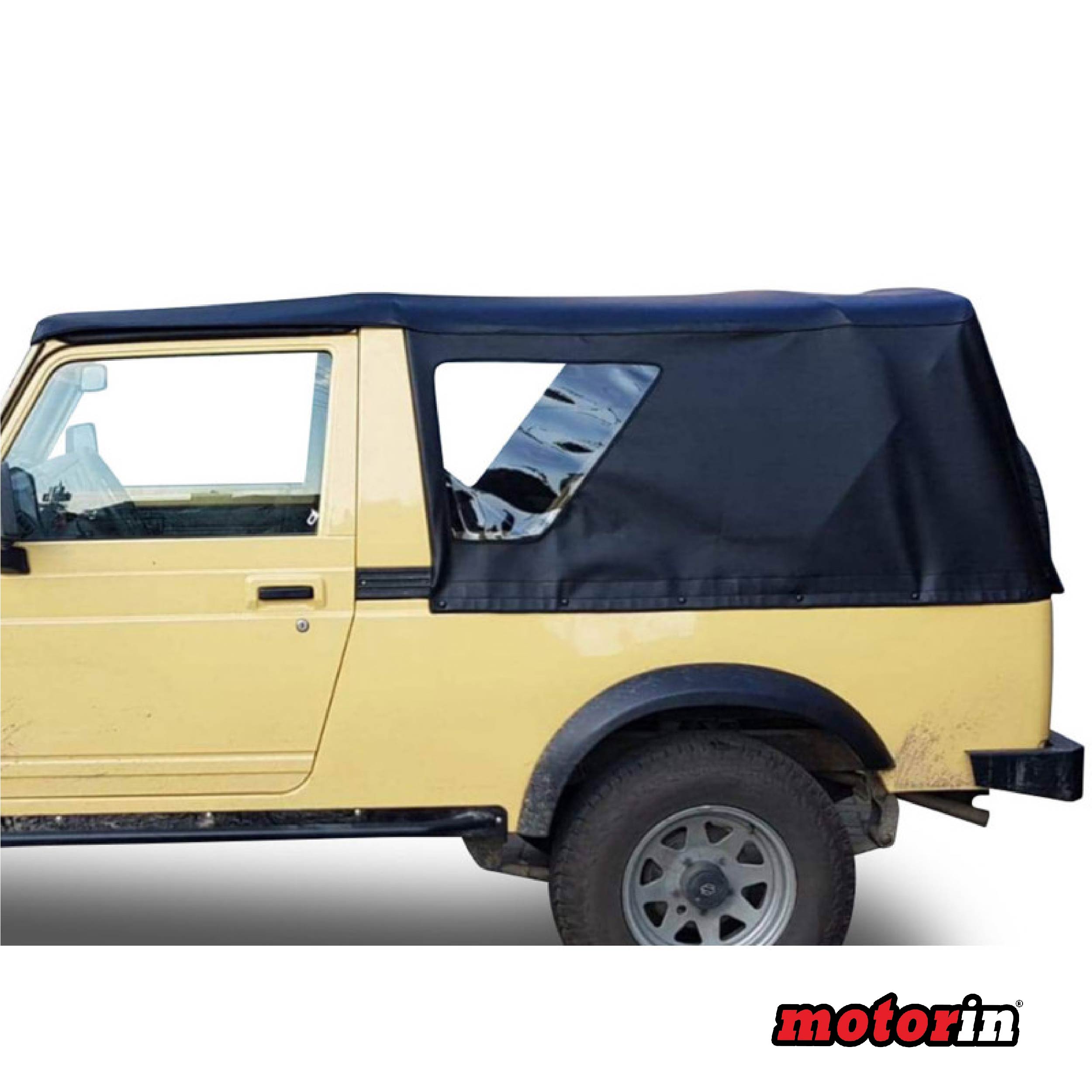Capota em lona de elevada qualidade, desenvolvida para os modelos Suzuki Samurai cabrio, modelo longo, garantindo durabilidade, estanqueidade e um visual fiel ao original.