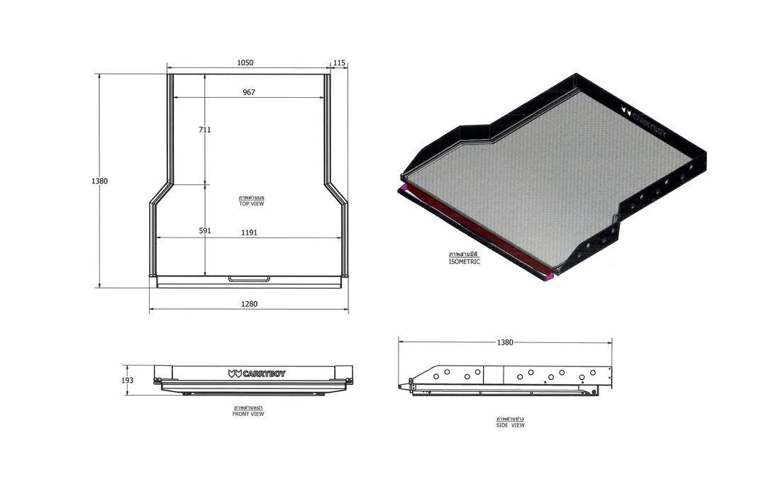 A bandeja deslizante é um piso de área de carga extensível robusto completo com bloqueio integrado e mecanismo de travamento.